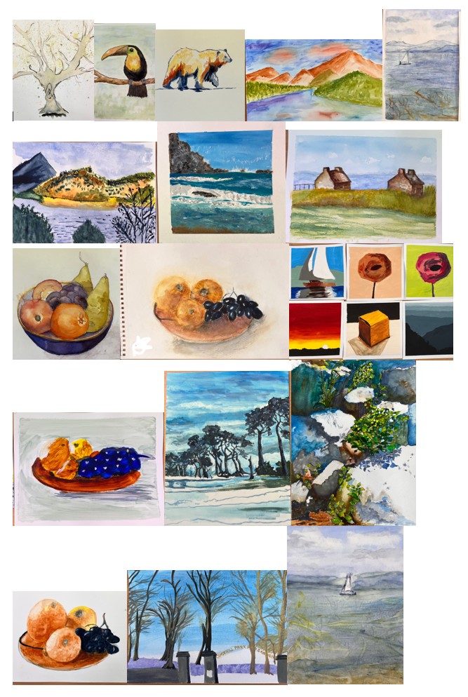 We covered the basics of painting with water colours and acrylics and gained insight into printing, collage and other techniques.
