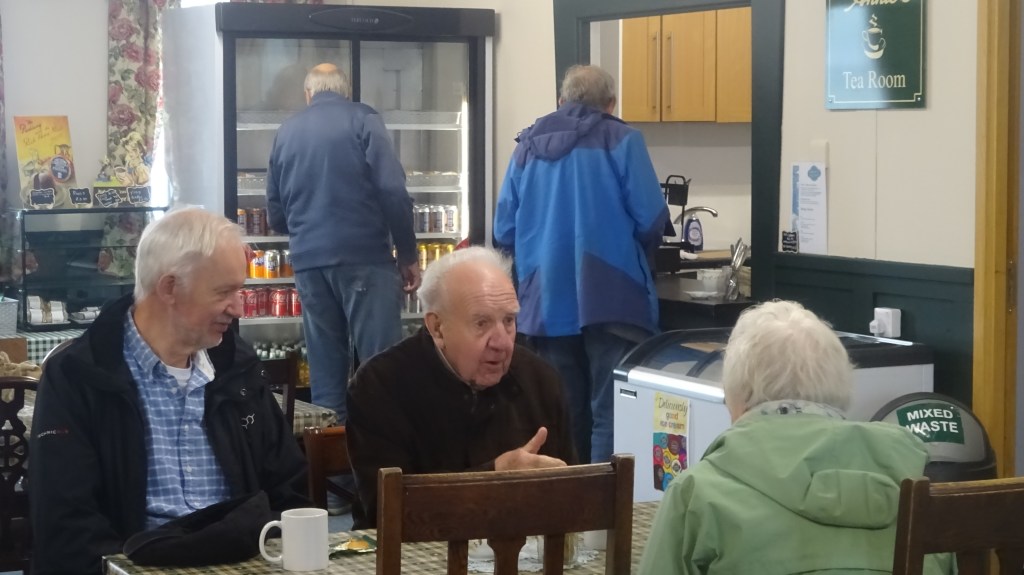 The restaurant and coffee bar were well supported by OiR members . We had actually taken packed lunches—-just in case! It gave us great pleasure in having a special OiR member accompany us on this outing—Harry Richardson, our centenarian—–now 104 years old—accompanied by his daughter, Penny.